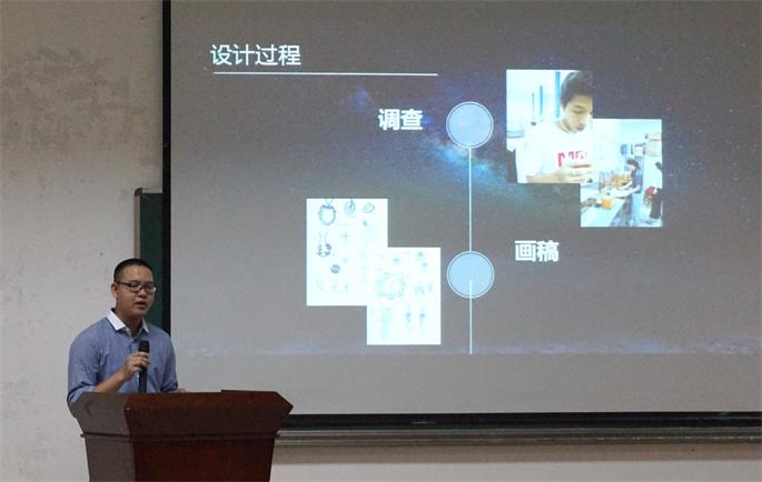 “何为首饰设计,设计来自哪里?”首饰工作室成员杨嘉豪以问题的形式引出首饰设计的话题,听完同学们各种不同回答后,杨家豪作了总结性阐述。他指出,首饰设计就是由市场考察到创意设计,再到实物成品,最后回归市场的一个循环过程,设计来自于我们对未知有趣事物探索过后一种创意提升。随后,杨家豪还为大家介绍了首饰设计的诞生全过程。他特别强调,首饰制作过程非常需要耐心以及活跃的思维。陈逸伍同学为大家介绍银饰工艺,主要提到银首饰工艺的流程,银饰工艺的要点以及对银饰工艺的误区认识。陈逸伍谈到,银饰工艺流程需要发挥团队合作精神,一个人的力量总是有限的,作为团队成员应该意识到团队的力量是团队发展的关键。工作室市场组成员高碧珊为大家讲述首饰工作室的市场运作,主要是给大家展示近期参与的一系列创意市集剪影,分享首饰工作室创意市集的营销经验。她认为,首饰设计的市场活动区别于一般商品的市场营销,在营销前必须要有充足准备,做足市场调查,了解消费人群等。最后,在观众互动环节,首饰工作室的团队成员解答同学们对首饰设计的相关问题,并鼓励学生们踊跃参与首饰工作室,了解更多有关首饰设计的情况。