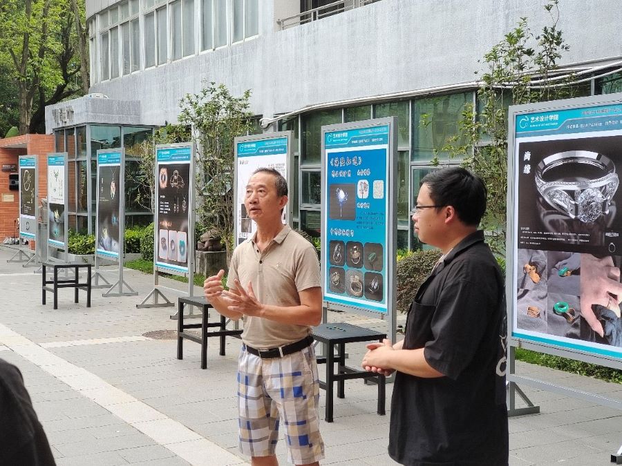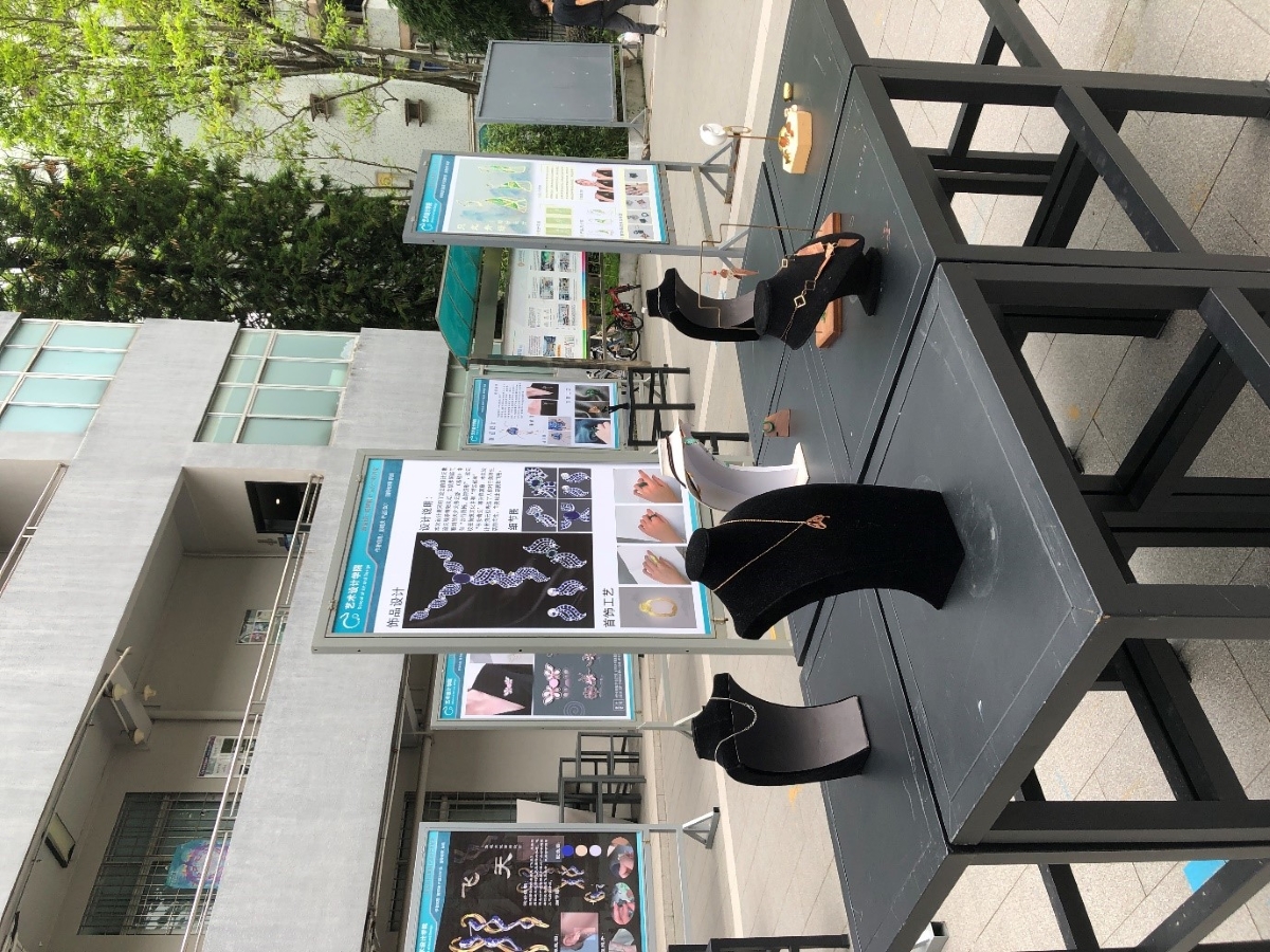 6月15日下午,在艺术楼广场开展了为期近一周的《饰品设计》课程成果展。304am永利集团院长林钰源,副院长赖伟成,学科带头人杨晓旗教授,专业负责人李诚副教授,产品设计教研室主任张珩,《饰品设计》与《首饰材料与工艺加工》课程授课教师阮维,以及韦思腾,沈德生,曾亮等设计专业教师共同出席了本次展览,产品设计教研室教师阮维负责本次展览的策划、布置并担任本次开幕式的主持人。当天阳光明媚,课程展开幕式在愉悦的氛围中展开。