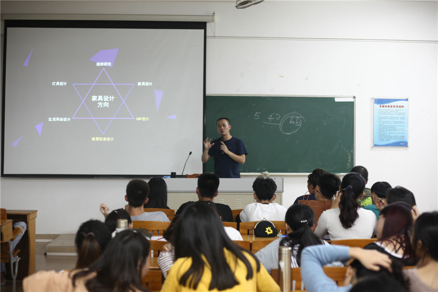 伍峙霖、黄侃、谭杉分别对交互设计方向、家具设计方向和首饰设计方向作了详细的介绍和讲解,并对各专业方向的重要组成内容进行了简明扼要的分析,希望2016级产品设计专业的同学能够对各专业方向有细致的了解。在场同学面向专业老师,进行与专业相关的提问,各专业方向负责老师有针对性地进行解答。同学们踊跃积极地提出了自己对相关专业方向的疑问和看法,3位专业负责老师均一一作出了解答,并给予了相关建议,帮助他们走出与专业相关的思想误区,促使同学们对各专业方向有更进一步的了解。谭杉对专业介绍会进行总结。他提出,在选择专业方向时,不要盲目跟风,或者受到他人的干扰,要在充分了解专业的情况下,根据自己的兴趣爱好、结合实际情况、遵循自己的内心去做出明确的选择。