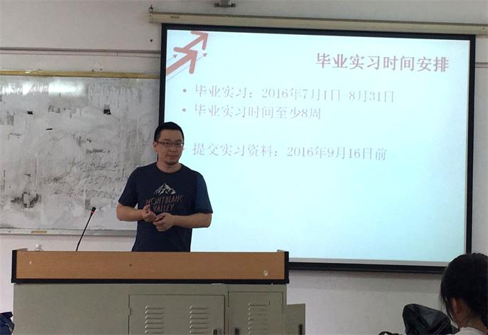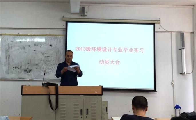 6月16日,304am永利集团2017届毕业生实习动员大会分两场在艺术楼301召开。环艺教研室主任阳林杰老师,视觉教研室主任谢建鹏老师,2013级辅导员黄荣美以及相关实习指导老师、2013级全体学生参加了本次动员大会。会议由谢建鹏主持。