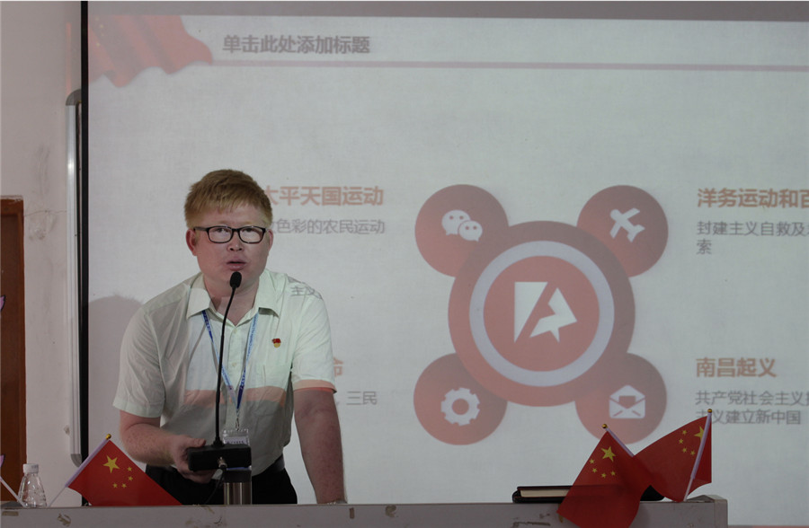 关树基结合“九一八”国耻日的时间节点,通过回顾中国近代史,自1840年鸦片战争爆发到1949年新中国成立,中国的进步青年和有识之士长达109年探索救亡图存,推翻帝国主义、封建主义和官僚主义三座大山,建立人民当家作主的人民政权的全过程。他图文并茂、声像结合、形象生动的分析了“九一八事变”的前因后果和历史教训。要求大家铭记历史,铭记为争取民族独立,维护国家统一,捍卫和平发展的一代又一代勇于献身国防的中华优秀儿女的英雄事迹。他号召学生党员和团学干部敢于有梦、勇于追梦、勤于圆梦,在最美丽的青春年华,做到远离网游、远离懒惰、远离负能量,亲近刚强、坚定信念,弘扬正气,立鸿鹄志,做奋斗者,带着青春正能量不断以实际行动为实现中华民族伟大复兴的中国梦而不懈奋斗。