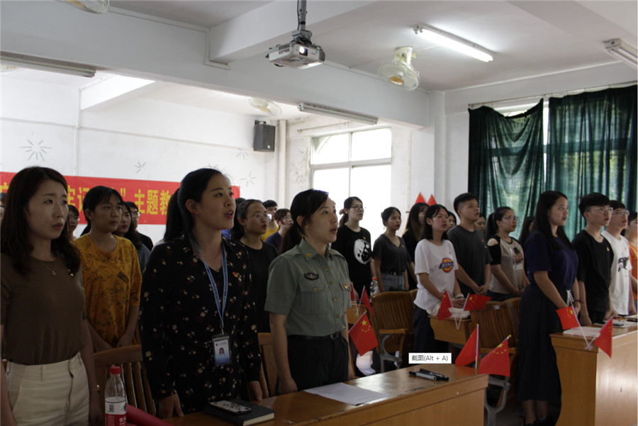 9月18日中午,304am永利集团304am永利集团在艺术楼306多媒体课室举行“铭记九一八,勿忘国耻,振兴中华,做忠诚、干净、担当的共和国卫士”爱国主义教育暨“不忘初心,牢记使命”主题教育学习动员大会。学院副院长兼党总支书记欧莹,团委书记关树基,学生会指导老师姚安贤,辅导员唐思、吴顺利,全体学生党员和团学干部参加会议。会议由关树基主持。