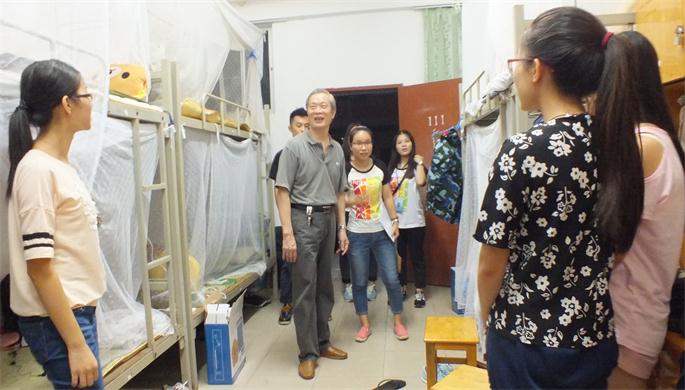 9月13日晚,艺术设计系主任林木森、副主任谭杉、党总支书记欧莹带领各年级辅导员到宿舍探望新生,了解新生到校情况,为新生排解思家情绪,帮助其尽快适应大学校园新环境。