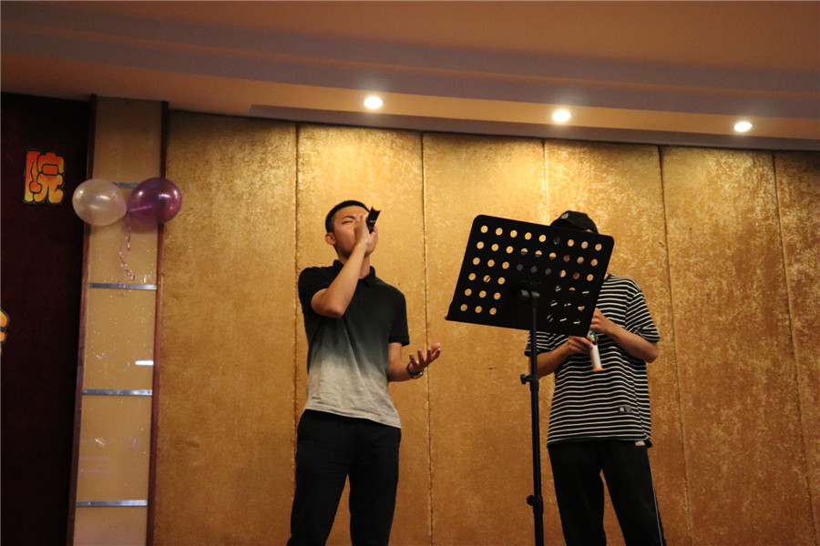 而后,数媒1班与2班的邓基智,胡莹睿同学带来了三段节奏感强烈的街舞,动作是那么协调统一,稳定自然;接下来是产品2班的说唱节目《想把你留在这里》,歌词里所说“想把你留在这里,给你庇护”,说出了艺院的心声,艺院不仅是你的学院,更是一个在你受到伤害时可以呆的一个庇护所;《慢慢喜欢你》一首莫文蔚的新歌,由数媒2班的谷鑫所诠释,大学很长,可以有时间让你慢慢喜欢上一个人,慢慢喜欢上她,余生都是她。新生班级在一周内完成节目的选择、排练、在大学舞台充分展示他们的青春才智与多才多艺。