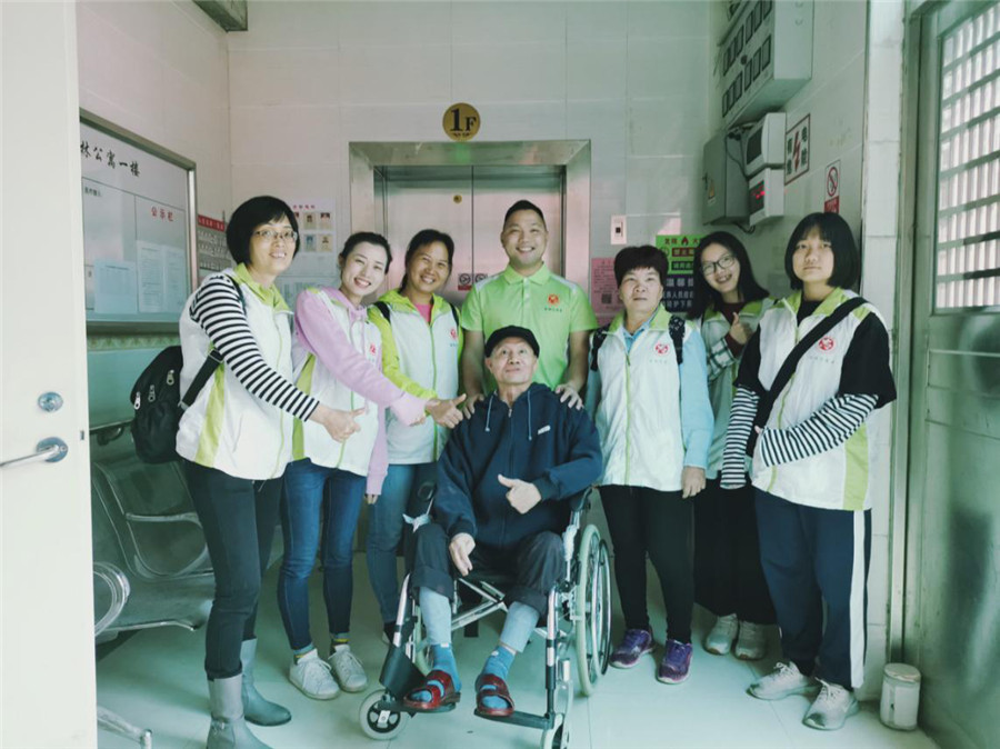 志愿者与老人合影