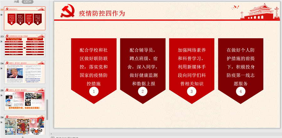课前,关树基通过疫情防控过程、国内外抗击疫情的阶段性成果和全民全社会参与疫情防控人民战争的参与入手引出党课主题。