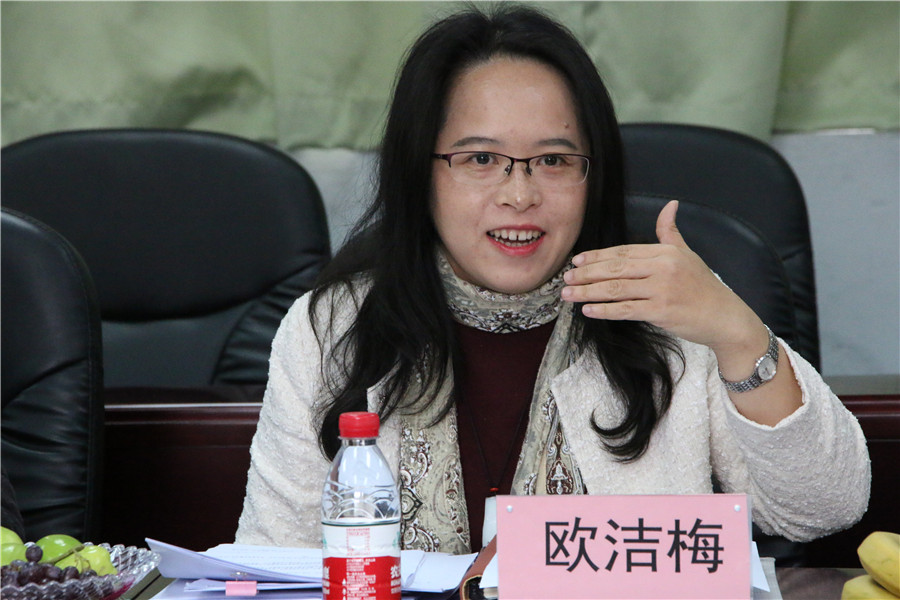 欧洁梅介绍学校人才培养方案修订背景及方向,对各位专家到来表示热烈的欢迎。她指出,学校人才培养方案修订是基于落足培养高素质应用型人才为目标,顺利迎接本科教学水平评估,结合2018年国家本科生教育标准的新要求,参照国家标准进行的一次反思,必须遵循规范性文件的背景进行修订。她希望专家在论证时务必严格对照国家标准判断我院的人才培养方案修订是否执行到位,目标、规格一定要紧跟国标制定,对照国标对新制定人才培养方案进行论证。她还提出有几个问题一定要注意论证。一是国家对艺术类专业有提出专门的标准和要求,我院制定的新版人才培养方案目标有没梳理、区分于其他专业,凝练是否到位,培养能力问题,是否到位,学生培养的能力是否符合社会发展需求;二是重点把关课程体系设置,基础课程、专业课程、选修课程是否融入既定的课程体系,课程设计是否按照国标放在相应课程设计模块;三是实践课程设置,对照国标实践类课程要更丰满一些,如果要调整如何调整的更合理,设计学原理如何在四个专业区分、凸显亮点,如何在人才培养方案中体现出来等。