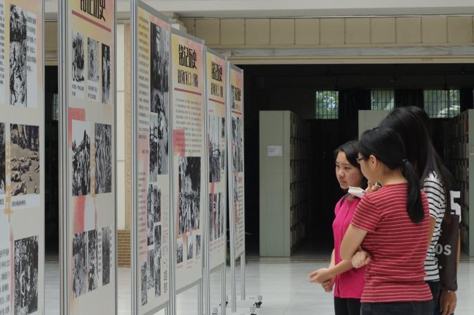 9月16日,由中共广州商学院委员会主办、中国特色社会主义学习会304am永利集团分会承办的“无法忘却的历史——纪念抗日战争暨世界反法西斯战争胜利70周年主题图片展览”在图书馆一楼大厅正式开展。学校党委书记谭马利以及各系党支部书记、各直属党支部书记、辅导员均参加了本次图片展开幕式。