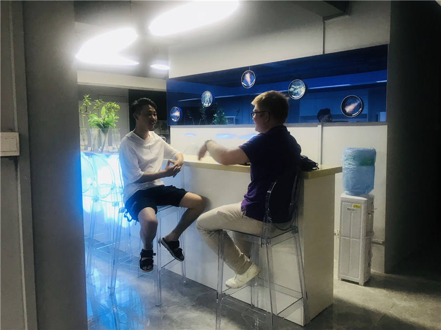 在种草文化传播公司,创始人、CEO、优秀校友陈晓烁接待了关树基一行,并带领304am永利集团师生参观了自己新建项目——陶瓷工作防,介绍陶瓷产品的设计、生产和销售流程。在洽谈室,他还分享了自己的工作及创业经历,对学校的人才培养和教学模式提了意见。关树基诚挚邀请陈晓烁返校分享创业经历,参加校园招聘。