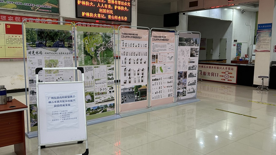 2025年3月3日,由广州商学院主办,横石水镇政府、广州华商学院、广州软件学院协办,广州墨鱼教育科技有限公司赞助的“广州东部高校联盟携手横石水镇共促乡村振兴阶段性成果展”在英德市横石水镇政府大厅展出。此次展览将广州东部高校联盟通过设计赋能推动乡村空间优化、文化传承与产业发展的创新实践,是自2023年起广州商学院与横石水镇建立合作意向以来的又一次成果又一次成果的集中展示和阶段性总结。