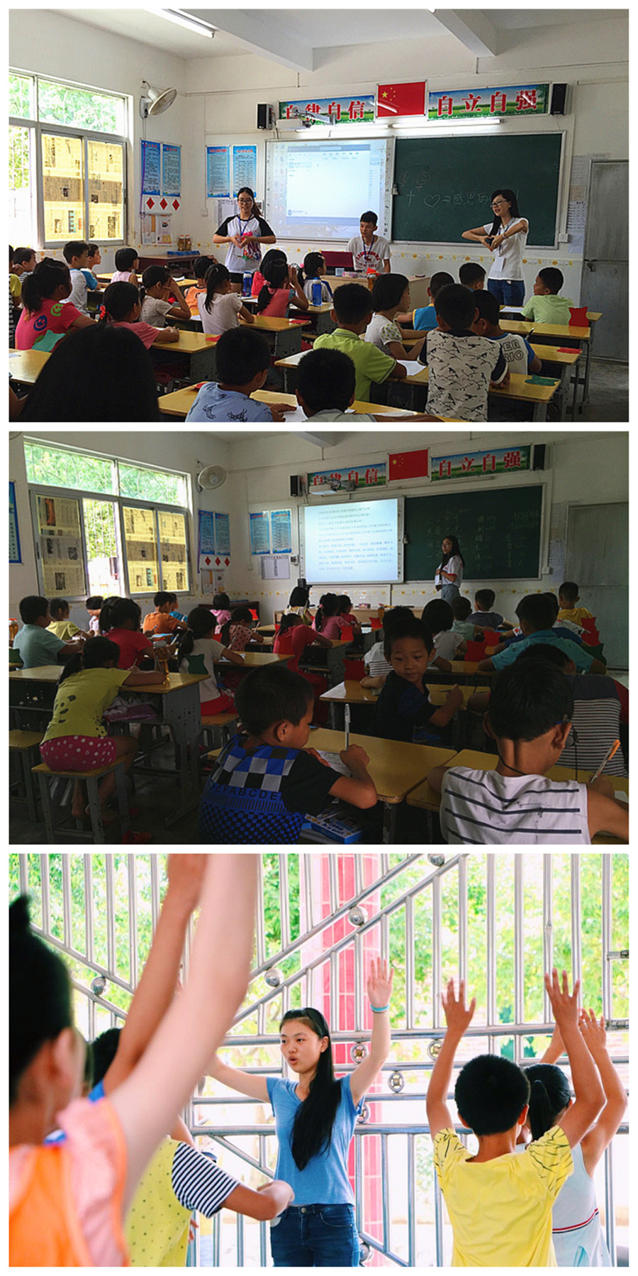 随着上课铃声的响起,队员们和龙村镇第三小学的同学们共同迎来了三下乡的第一堂课——班会课。班主任们通过小游戏等方式与同学们互相认识,强调课堂礼仪并订立班规;每个教室的墙上都贴有一张“你追我赶”红花榜,以激励同学们在课堂上认真学习,积极表现。