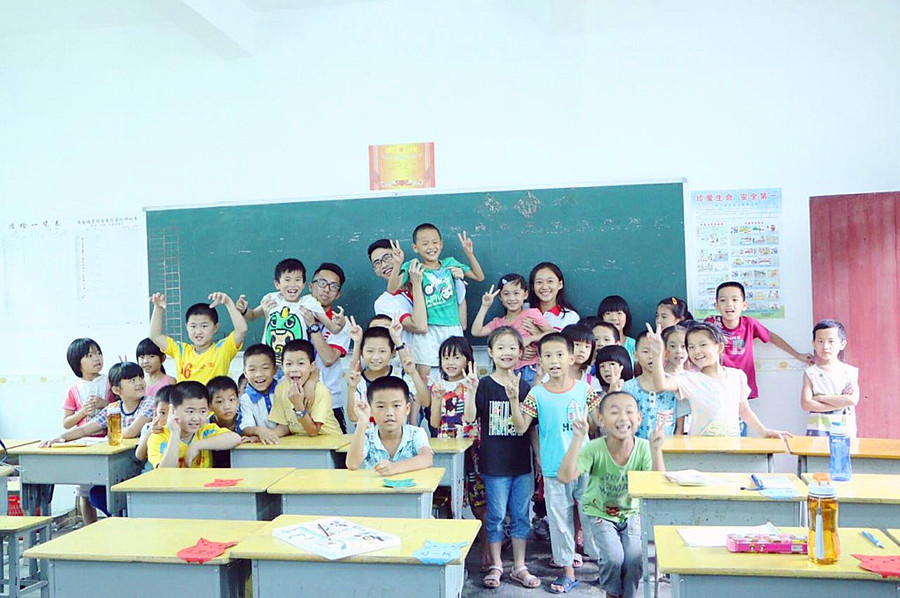 下乡的第二天起,我们工作重心放在了“教与学”上。根据龙村镇第三小学同学们提前报名的情况,共设置了5个班级,其中三年级、四年级、五年级各1个班,六年级2个班,共150名学生。