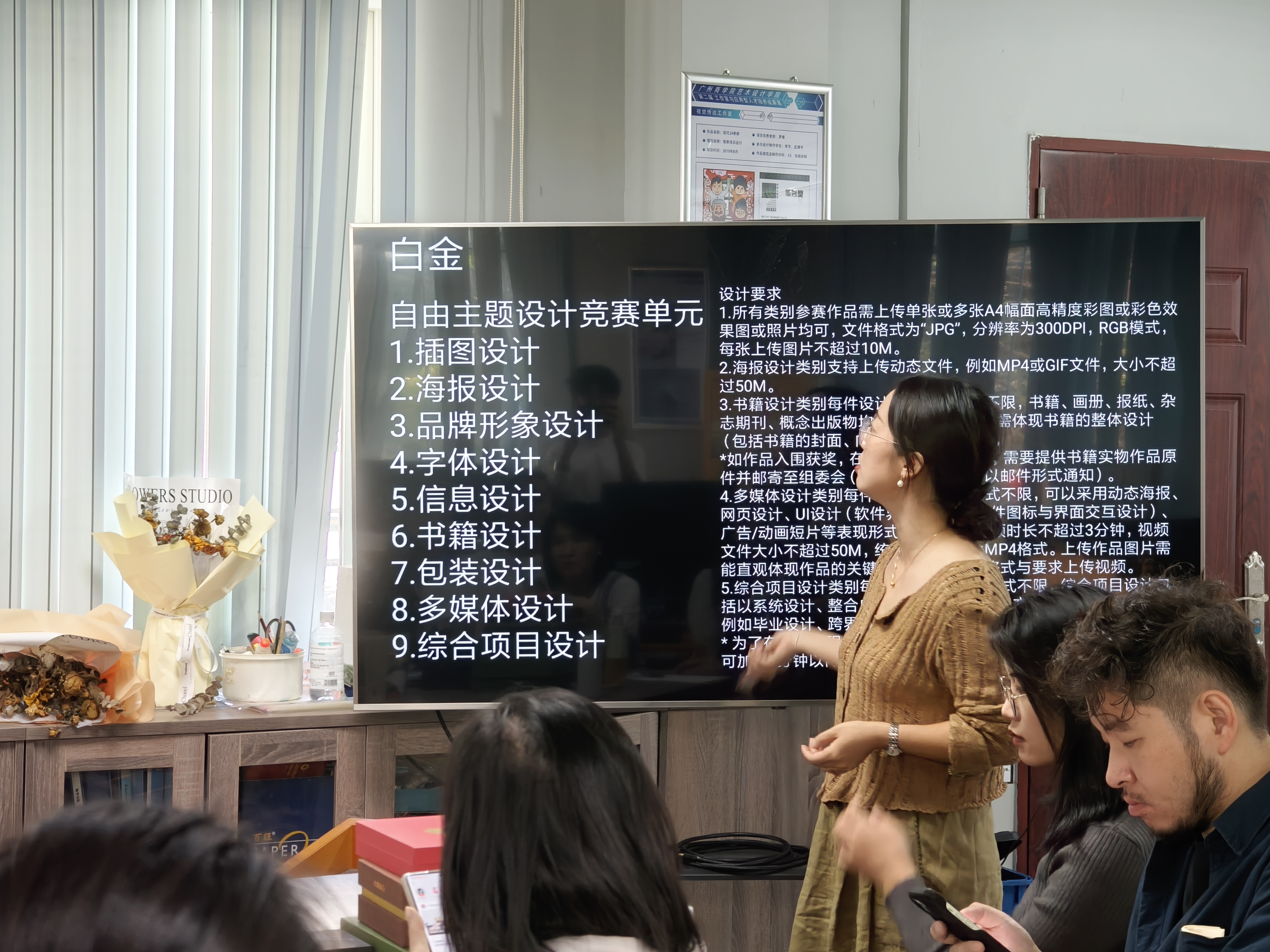 2024年11月14日,视觉传达设计工作室开展学科竞赛专项辅导及文创礼品专项研讨会议,参与本次会议的教师有罗靖副教授、黄明珊副教授、曾小兰副教授、熊瑛子副教授,专任教师叶剑光、王欢、周丽东、郝一畅、蒋春林,参与本次专项会议的学生为视觉传达设计工作室全体学生。