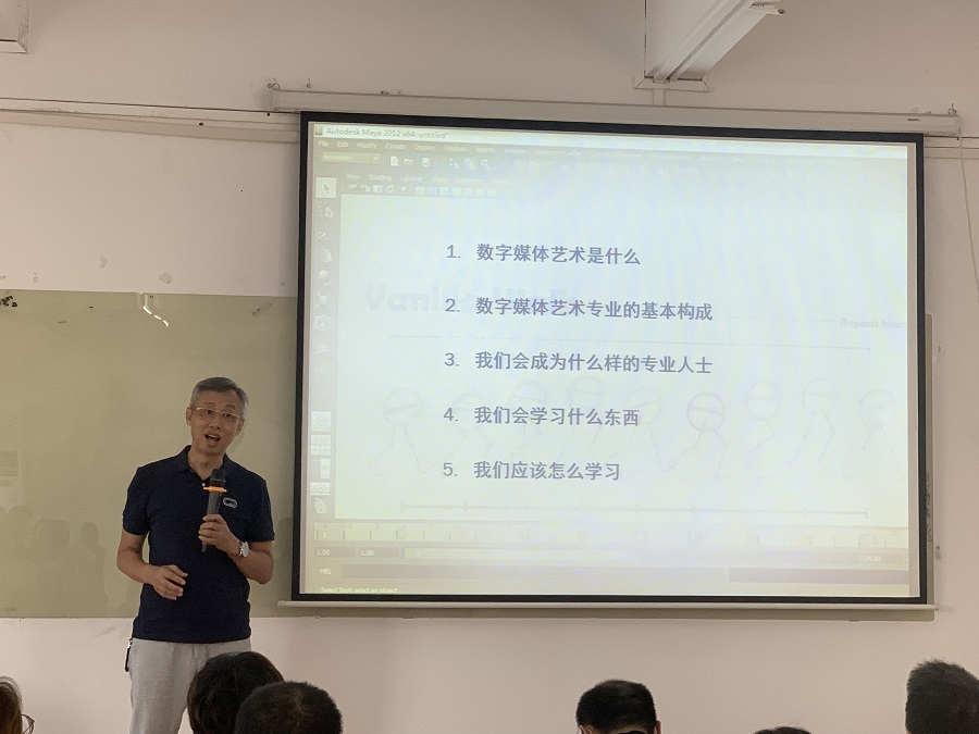 本次会议主要是根据教师介绍,专业介绍及专业答疑三大部分开展。首先,介绍了各教师的的主攻方向,给新生日后请教相关老师提供了指引。接着,通过对数字媒体艺术专业介绍,让学生了解数媒的基本含义、专业方向、人才培养目标,明确学生在大学4年中必须掌握相关的专业知识及专业技术能力。另外,还介绍了数字媒体艺术专业的主要课程及学分,包含公共平台课、专业基础课、专业必修课、专业方向主干课、专业选修课共五大部分。除此之外,还提出了数字媒体艺术专业的学习要求,鼓励学生制定自己的学业目标,认真学习,勤实践,努力实现梦想,充实自信地走向人生的新征程。最后,专业答疑环节,多位学生踊跃提出自己的疑问,陈卫平以及黄艳都为学生提供了对应的解答,热情互动中拉近了师生间的距离。