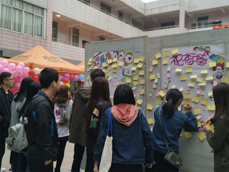 趣味游园活动伊始,在艺术团歌唱队的带动下,现场气氛很快活跃起来,吸引了不少行人纷纷参与到活动中。本次活动采用班级承办的方式,各班提出趣味摊位方案,由学院学生会审核筛选,最终评选出14个具有艺术设计专业特色的活动,包括有经典网络游戏《你猜我画》,蒙脸贴小丑的《丑脸贴》,浪漫的拥抱爆气球的《告白气球》等活动。另外,女生节祝福墙写满了男生对女生的祝福,女生们在也在愿望墙上写下了自己的愿望。同学们在游园活动中,感受着节日的欢乐气氛,活动现场更吸引了许多同学来游玩,直至主办方宣布结束,同学们才依依不舍地离开。