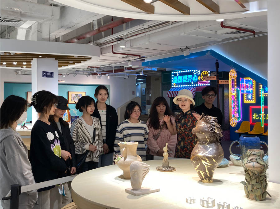 4月25日,公共艺术专业潘梦梅老师组织作品受邀参展的学生一起到青年文化宫布展,并带学生参观了其他的展出作品。