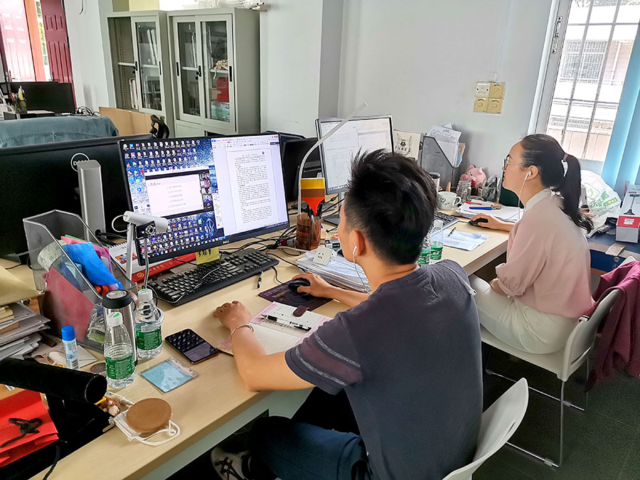 据悉,答辩和毕业设计是304am永利集团每年的重头戏,虽然今年受到不可抗逆的疫情影响,但艺设人坚持“解决办法总比困难多”的思想,施展浑身解数,攻克难关,全力保障答辩工作如期完成。面对前所未有的“云答辩”,无经验可鉴,而且由于艺术设计的专业特色,对图像和视频的展示要求较高,这些现实问题都给学院的答辩工作带来了巨大的困难。学院领导斟酌再三,提出网络升级支持方案,并主动与学校网络中心合作。在教学副院长赖伟成的亲自指挥下,实验员蔡金丹和曾亮两位老师在正式答辩前一天进行网络调试和网速升级,并调拨学院最好的在线沟通设备,在酷热难耐的天气下奋战到深夜,务求第二天的“云”答辩能流畅稳定。除此以外,避免答辩现场出现故障,16日当天,安排行政教辅人员和辅导员化身流动网络抢救员,即时解决返校老师答辩现场的网络问题。