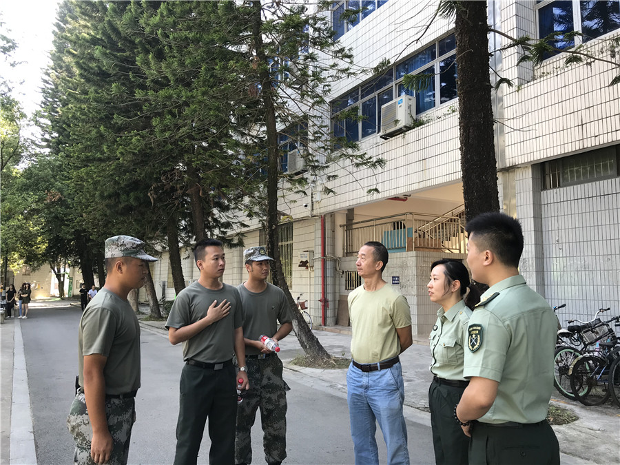 林钰源一行检阅了七营营区的方阵。在训练场上,林钰源与承训部队的教官进行亲切的交谈,询问军训的情况,了解学生训练的效果和精神风貌。同时向学生强调了军训是大学的第一课的重要性,引用《孙子兵法》:“兵者,国之大事,生死之地,存亡之道,不可不察也”。军事是一个国家很重大的事情,决定一个国家的生死存亡,不能不被重视。此外,他还向新生讲了将军与士兵的故事,讲述关于如何处理好服从命令以及独立思考的问题等。