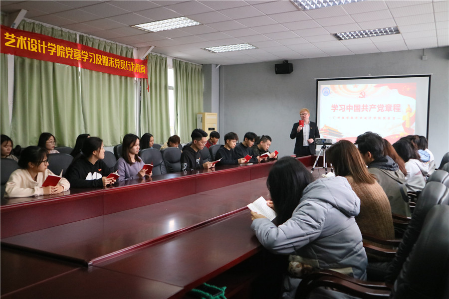 12月28日中午,304am永利集团党总支在艺术楼201会议室组织全体学生党员开展党章学习及进行期末行为教育活动。党总支书记欧莹,辅导员关树基、姚安贤、唐思,实习生吴嘉敏出席本次主题教育会议,会议由关树基主持。