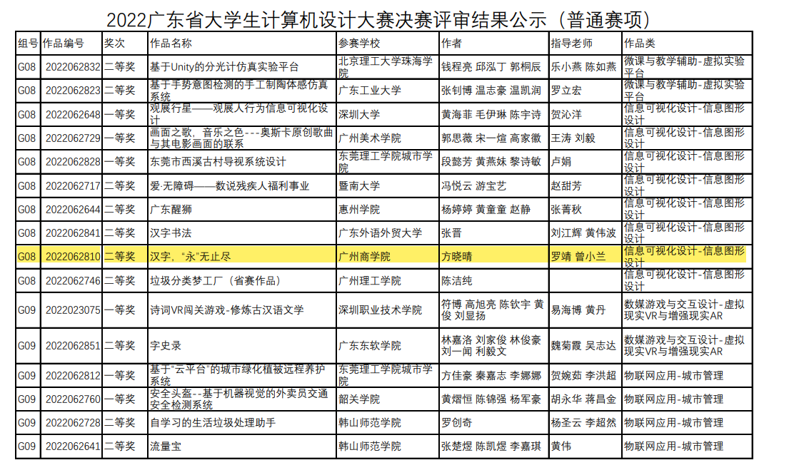 6月21日,由广东省教育厅主办,广东外语外贸大学承办的“2022广东省大学生计算机设计大赛”决赛评审结果公示,304am永利集团获得一等奖一项,二等奖一项。