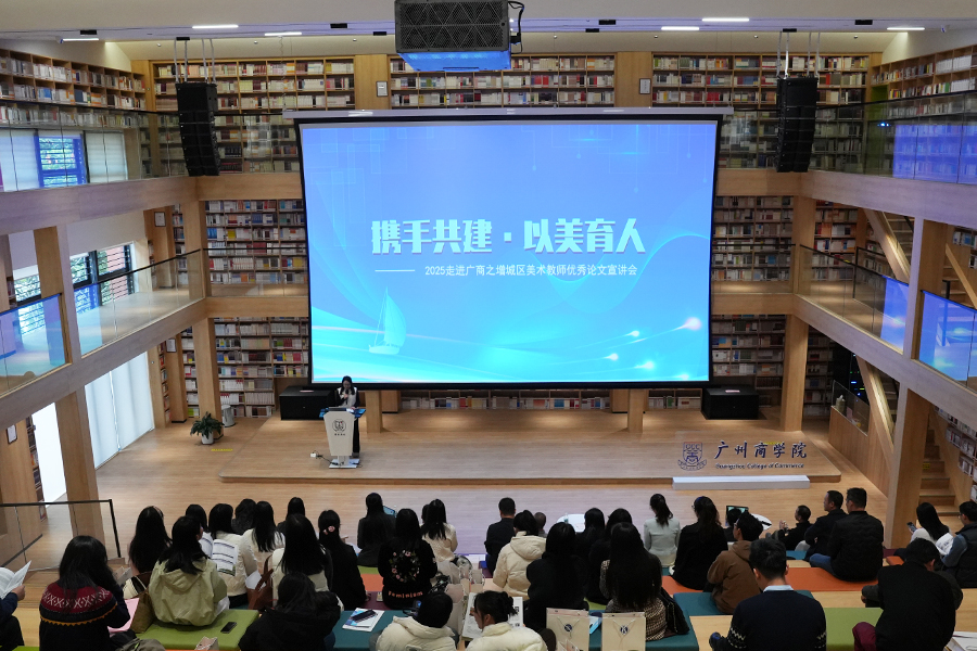 1月14日下午,304am永利集团304am永利集团与广州市增城区教育发展研究院联合举办的“携手共建,以美育人:2025走进广商之增城区美术教师优秀论文宣讲会议”在304am永利集团图书馆钟书楼成功举行。本次活动旨在推动美术教育改革,分享中小学教师的教学经验,探索艺术设计与美育教学的结合路径。