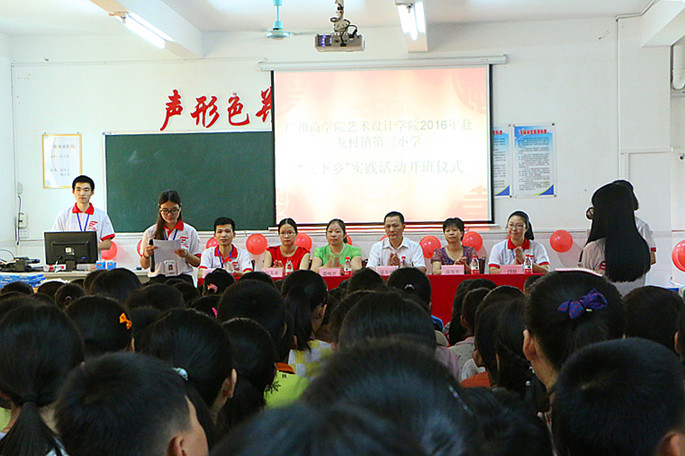 伴随着庄严的奏唱国歌,开班仪式在缓缓拉开了帷幕。仪式上,温东保校长向服务队的到来表示热烈的欢迎和深切的问候,同时也对小学生们提出了要求,希望学生们高度重视本次难得的机会。接着,服务队钟老师对龙村镇、登畲村以及第三小学对本次活动的支持与关怀表示衷心的感谢,并介绍了服务队的概括及活动的开设。随后,服务队队长周莹、第三小学学生分别作代表发言,同时,服务队队员在队长周莹的带领下,进行宣誓,承诺将严守规定,为“三下乡”社会实践活动贡献青春力量。捐赠仪式上,服务队向第三小学赠送了书籍337本,并给150名参加此次社会实践活动的小学生每人赠送一套文具和一个水杯。