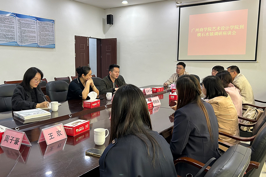 在座谈交流环节,丘尚飞向与会人员详细介绍了典型镇评定标准,并分析了横石水镇在公共基础设施建设、乡村风貌改造等方面的优化需求,包括公共厕所形象提升、绿美生态小公园建设、美丽乡镇入口通道建设、美丽示范主街改造、镇标设计及建筑外立面美化等。他希望借助广州商学院的设计力量,推动横石水镇整体形象升级,以更好地符合典型镇评定标准。