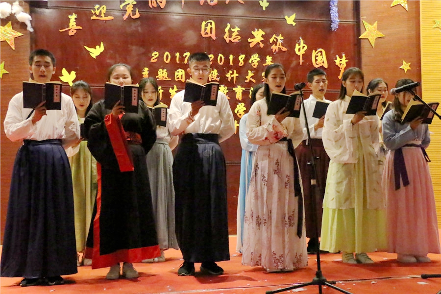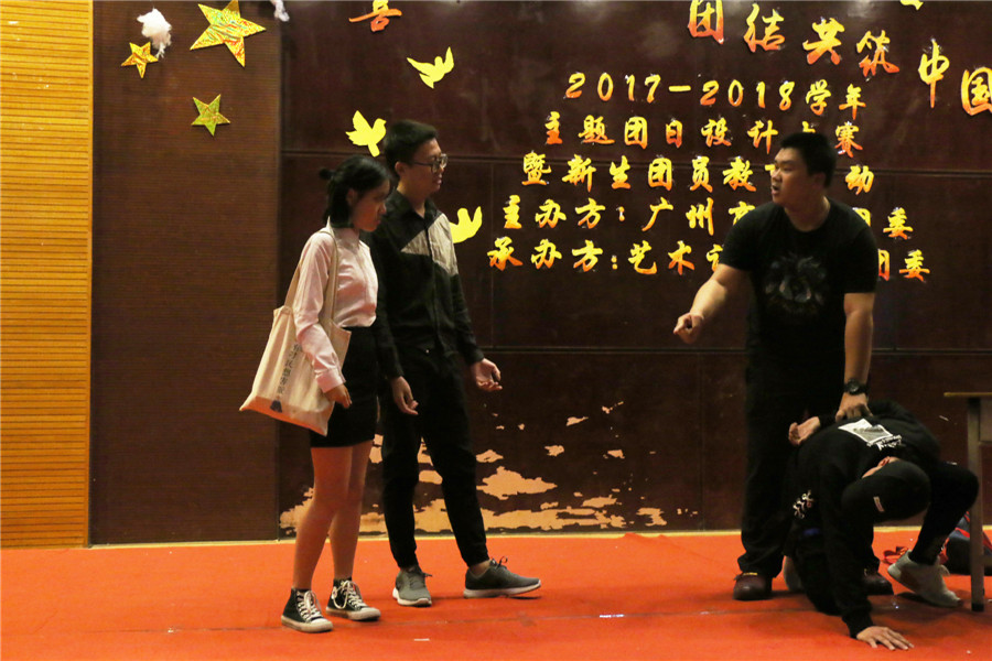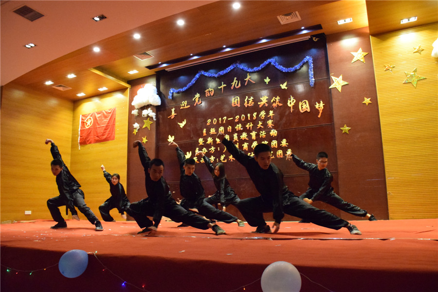 艺术团的节目舞蹈剧《梦之声》拉开了比赛帷幕。17产品1团支部的朗诵《我的中国梦》,铿锵有力、气势恢宏,诵出中华儿女在面对外敌入侵,前仆后继、舍身救国的豪迈,诵出了追求民主解放,奋发探索的惊天动地之举;17视觉1团支部小品以反腐倡廉为题材,以小见大,倡导清明廉洁的社会风气,引起了大家的深深思考;17环境1团支部大合唱《我相信》,唱出了青年团员的自信;17产品2团支部《祖国之声》歌声嘹亮、节奏轻快,唱响了华夏儿女追求民族独立、顽强拼搏、前仆后继、追求探索的峥嵘岁月,观众不由跟着节奏一齐歌唱,报告厅内飘荡着动人的旋律,大家都沉醉其中;17环境2团支部展示的《广商功夫笑传》把比赛推向高潮,军体拳表演的每一个动作都刚猛有力,打出了军人的气势,打出了中国军人坚韧不拔、勇敢顽强的战斗作风,打出了新时代中国的强大;17数媒1团支部身着汉服,典雅端庄,朗诵出了《弟子规》孝、悌、谨、信、爱众、亲仁、学文的德育修养和智育修养,引人深思。