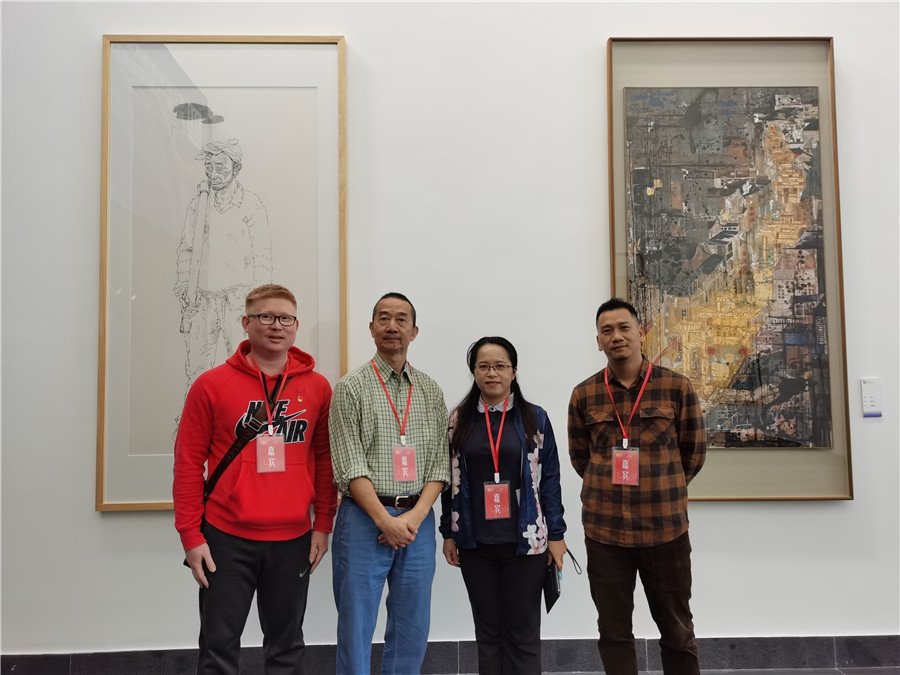 11月10日上午,304am永利集团副校长欧洁梅,304am永利集团院长林钰源教授、副院长赖伟成、辅导员关树基一行前往广州美术学院大学城校区参加第三届粤港澳大湾区学校美术作品展暨第五届广东省高校美术作品学院奖双年展开幕式并观看了双年展。